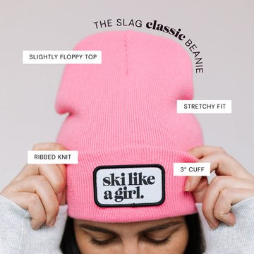 Stay warm (and look cute!) with our classic Ski Like a Girl Patch Beanie. Featuring our classic patch front and center on the cuff, this beanie is super soft, cozy, and made for everyday adventure. Designed for a comfortable fit, it’s an adult one size fits most. Feel free to throw it in the wash after too much après fun :)